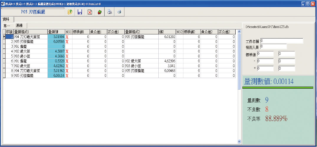 • 可量測刀刃偏擺值。(最高刃減最低刃之數值)